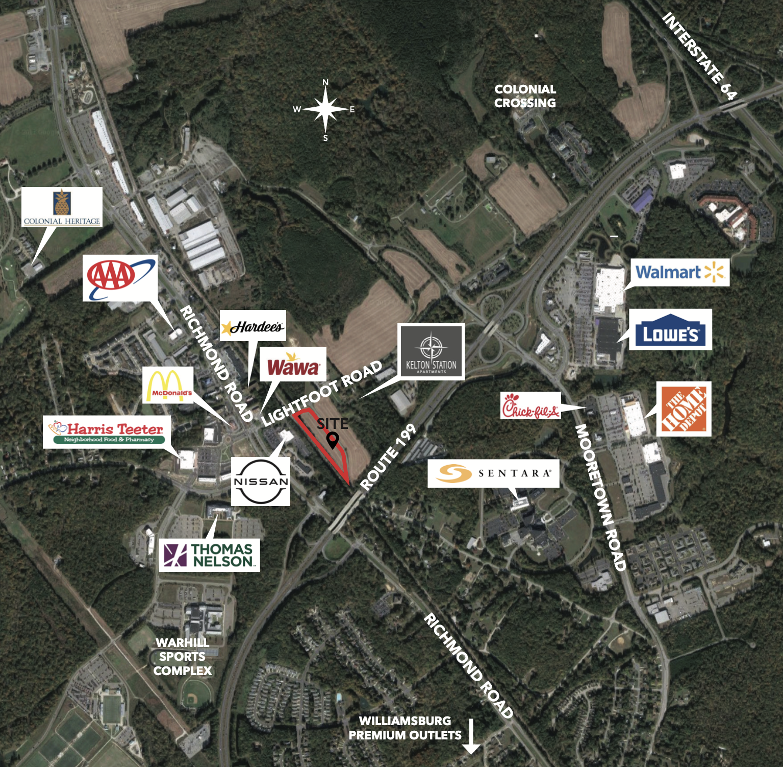Property is conveniently located off the interstate 64 and US Route 199 in the Lightfoot area of Williamsburg. This area has become a regional retail hub for the Williamsburg market and its neighboring counties.