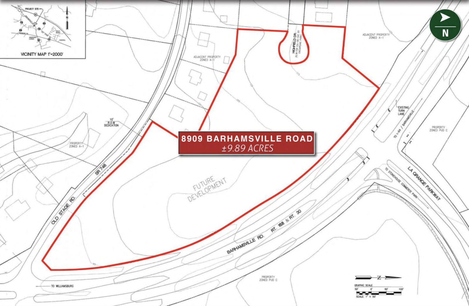 Adjacent to the property is the ±229-acre Stonehouse Commerce Park, which is home to the following businesses: Avid Medical, C&F Financial Corporation Operation Center, ESG International, Inc., La Tienda, Navien, and Nicewood Enterprises.